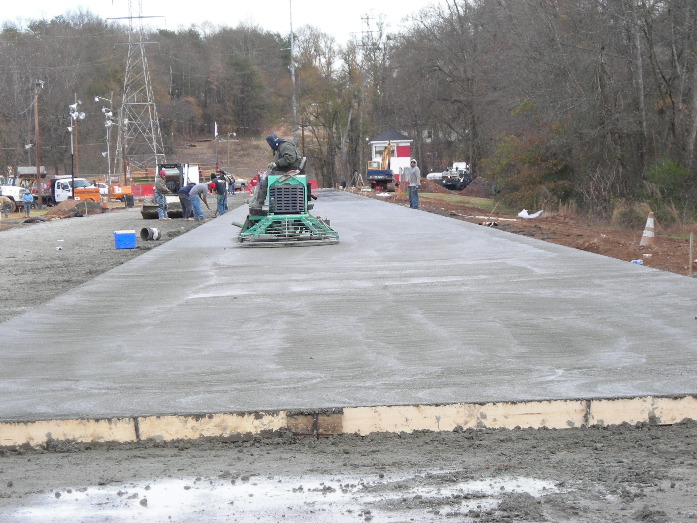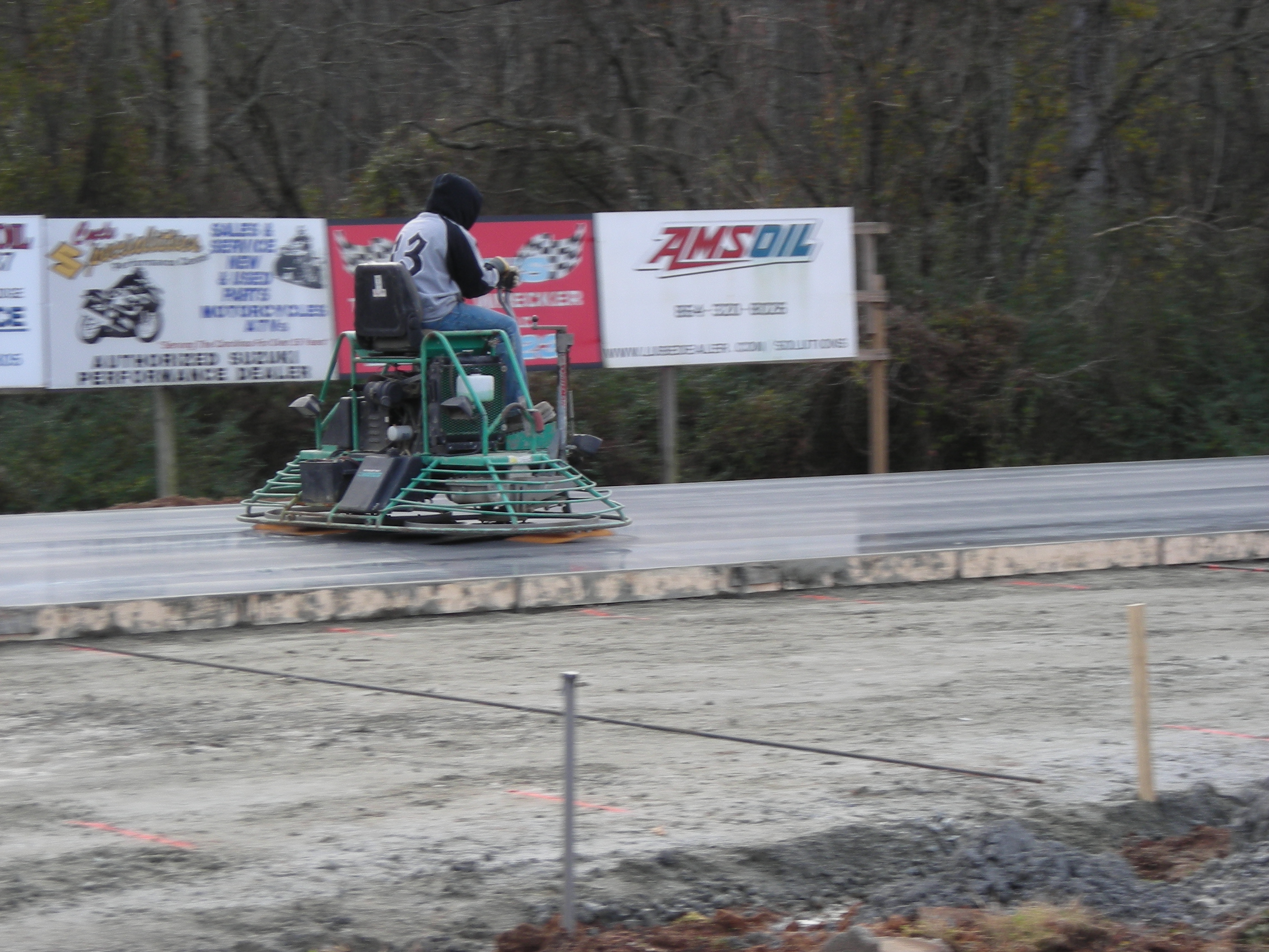 That guy looks like Charles Dukes!!!!!! He use to work concret some. He can't race his car no more so he got out there on the zamboni looking trowling thing. I bet he was late on the tree too.